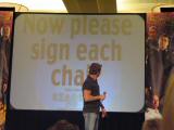 sign on the big screen saying “Now please sign each chair”. And Michael looked