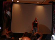 She was asked if she’s watched SG-1 before. She said she saw Stargate the movie first and loved it, and she’s a real sci-fi fan. She was really excited when she found out about SG-1 and she’s seen a lot of episodes. She was picking on Dr. McKay a bit, but all in good fun. Someone asked if she had a zat gun, who on SGA would she like to shoot. At first she said the wraith, then the queen wraith, then probably McKay (but NOT David Hewlett). She said that some action between Teyla and Major Sheppard might be hinted at, maybe sort of like a Jack/Sam thing (like it was in S4). Someone had asked her if she wants something to happen between her and Sheppard. She said that Brad Wright got that question at Comic Con and he said no. It will be hinted at, but she doesn’t know.